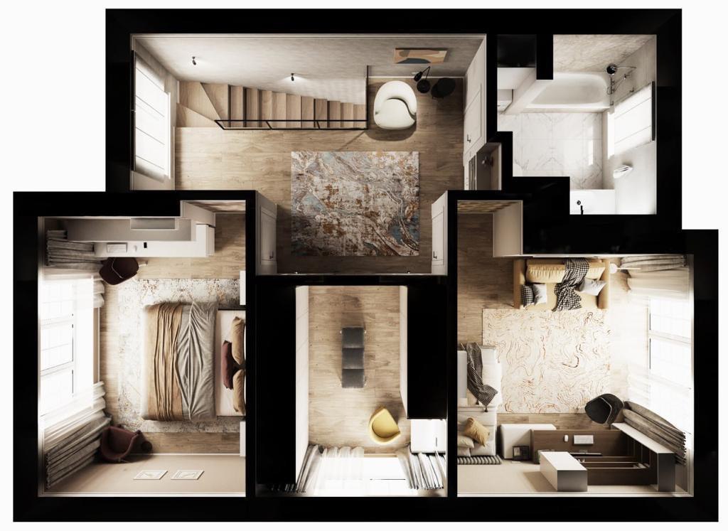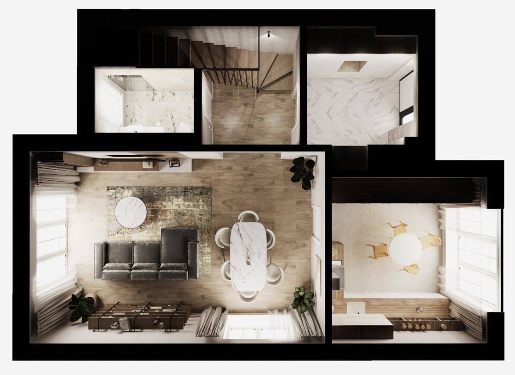 Железобетонные монолитные перекрытия первого и второго этажей. Второй этаж — полноценный с монолитным перекрытием в таунхаусах и частично мансардный – в квадрохаусах. Имеется люк для выхода в чердачное пространство, которое можно использоваться в хозяйственных нуждах (в продаваемой площади чердак не учитывается).